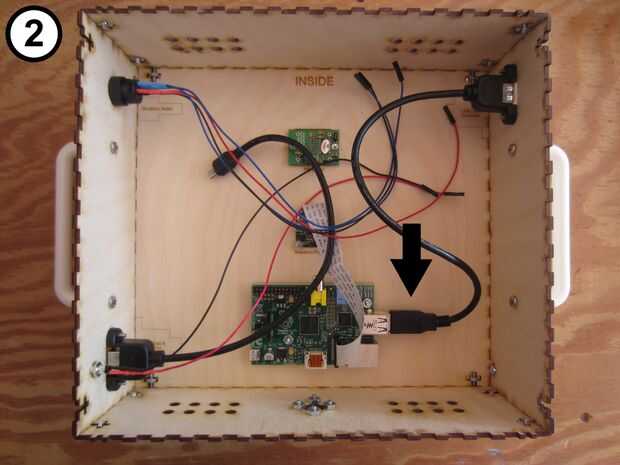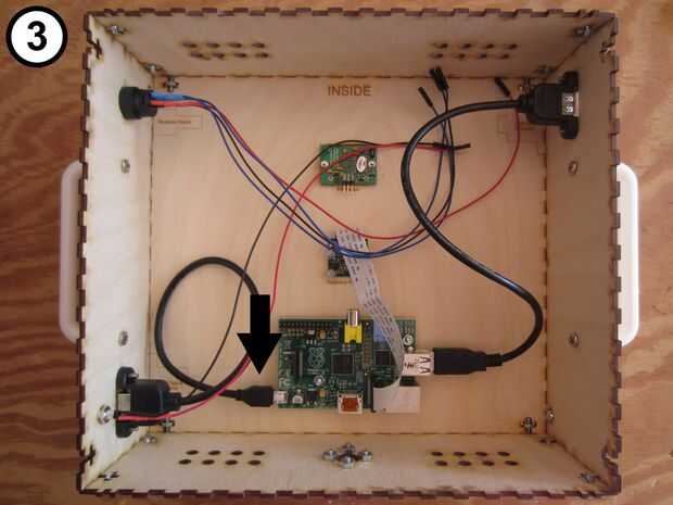 Conectar el micro B macho USB a hembra micro conector USB B de la Raspberry Pi (Foto 3). Este conector USB se utiliza para proporcionar energía a la frambuesa Pi.