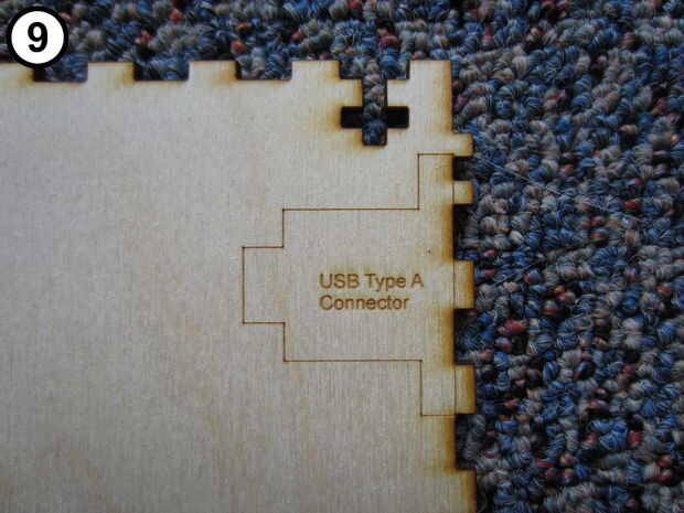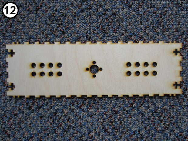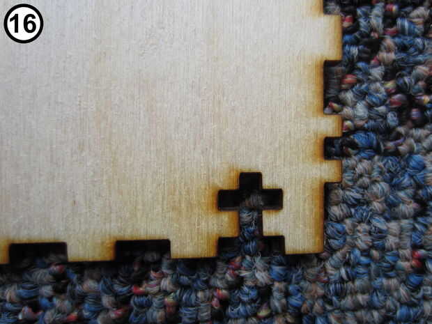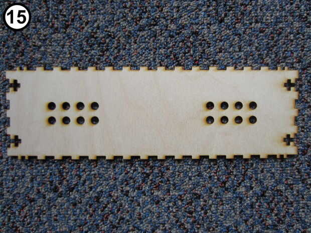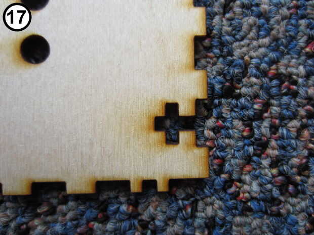 Fotos 16 y 17 muestran un primer plano de los recortes que se utilizará para los tornillos y tuercas que sujetan el caso. Cómo se utilizan estos se describen en el paso 13.