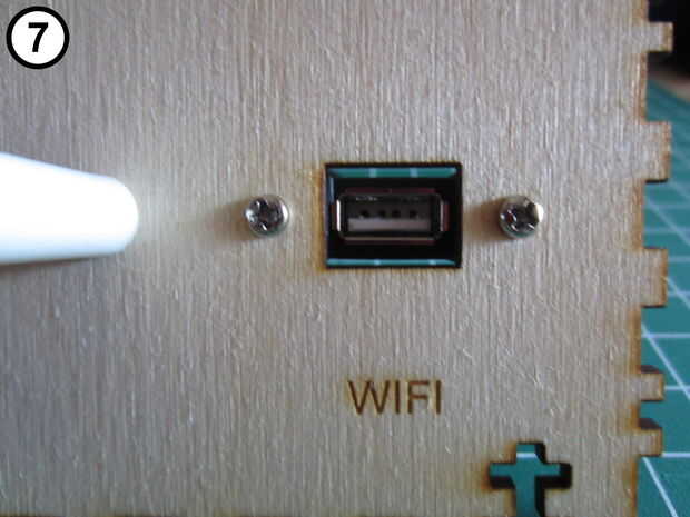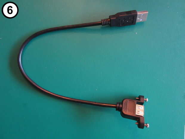 - Coloque el macho de tipo A para mecanografiar un panel hembra cable USB (foto 6) para el panel como se muestra en las fotos 7 y 8.