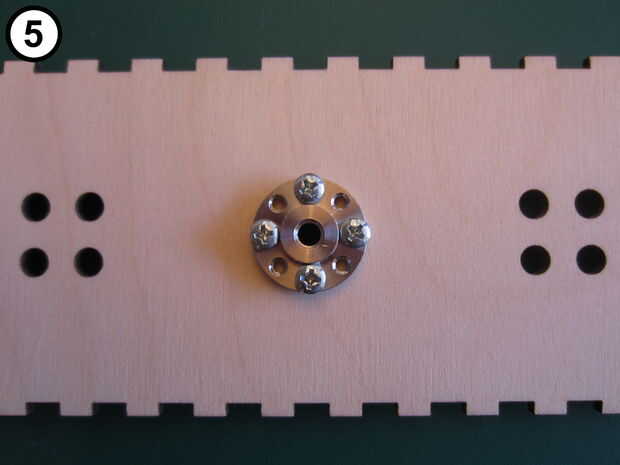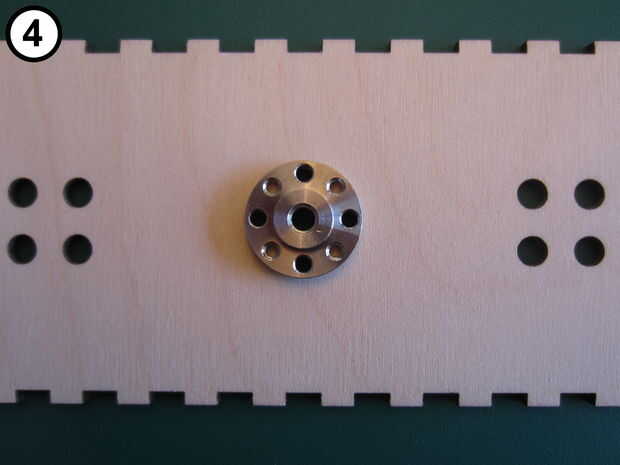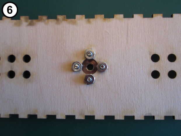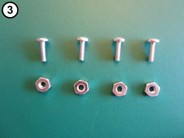 - Atornille la placa de tornillo redondo (Foto 2) al panel inferior (Foto 1) utilizando cuatro #6-32 7/16" cabeza máquina de tornillos y tuercas (Foto 3) como se muestra en las fotos 4 y 6. Apriete los tornillos firmemente.