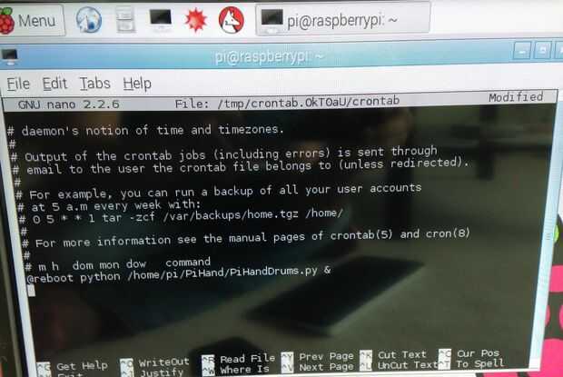 Antes de desconectar al monitor de la Pi, escriba el siguiente comando para editar el archivo Cron, para que el programa de python se inicia cada vez que arranque el Pi. Esto eliminará la necesidad del Monitor en el futuro.
