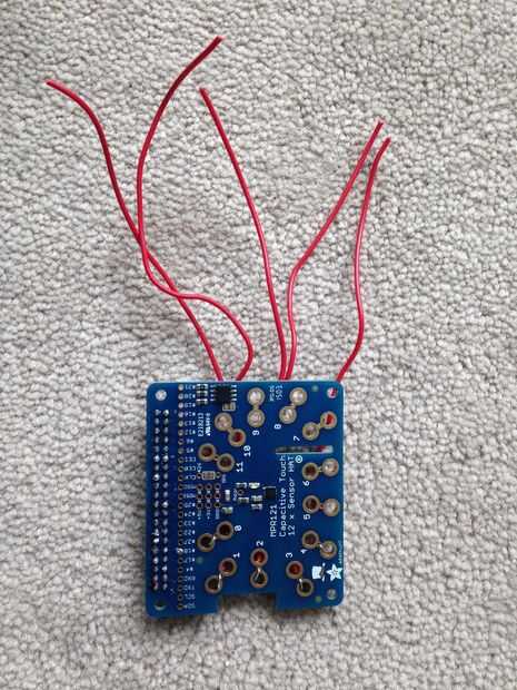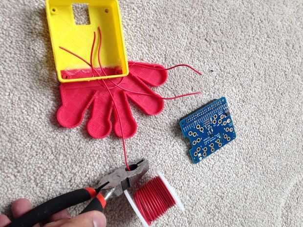 Mida aproximadamente pan alambre embarque desde el extremo de la base de la Pi al extremo del dedo y utilizar un juego de alicates para cortar y pelar el cable.