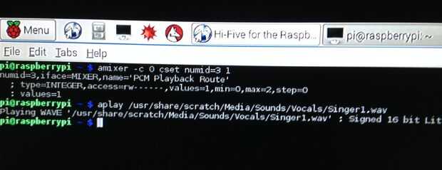 Además, ejecutar el comando que se muestra en la imagen de arriba para probar a ver si eres capaz de escuchar el sonido por el altavoz.
