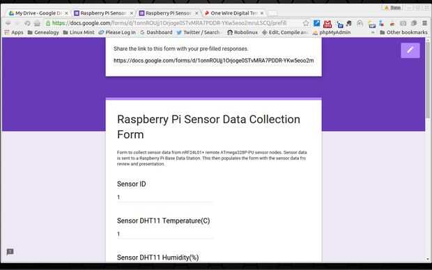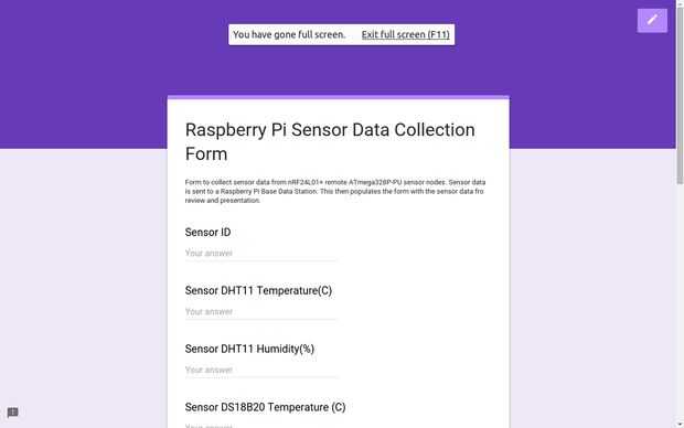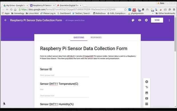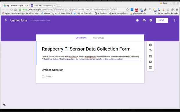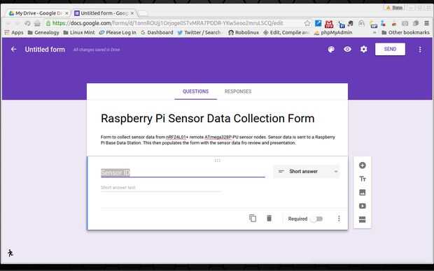 Suponiendo que ya tenemos una cuenta de Google, es tiempo para crear un formulario para recoger datos de los sensores. Lo siguiente asume cierta familiaridad con la creación de la forma de Google.