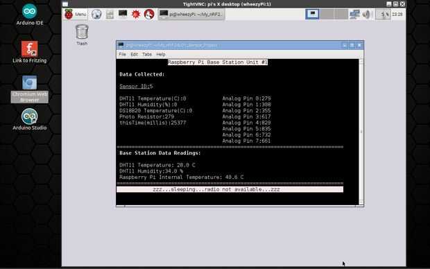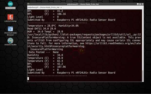 El Raspberry Pi Base receptor utiliza nCurses para mostrar el panel de datos. Código Python completa los datos leídos y rellena el formulario de Google.