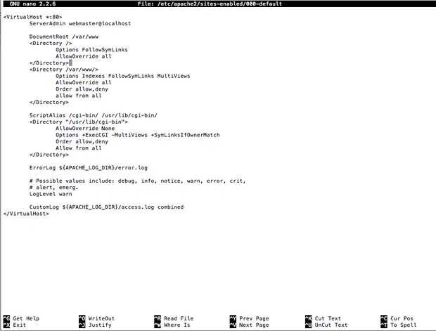 $ sudo nano /etc/apache2/sites-enabled/000-default
