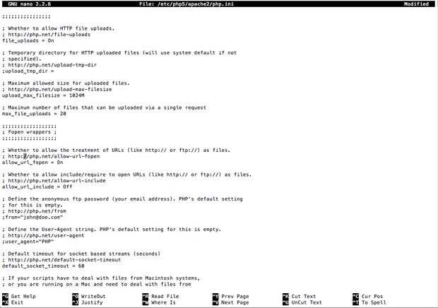 $ sudo nano /etc/php5/apache2/php.ini