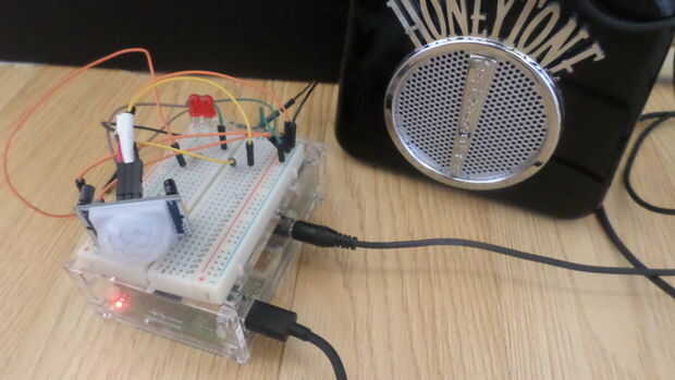 PIR + Python + frambuesa Pi = instalación Audio movimiento accionado.Historia del proyecto:Mi padre es un Comisario de un pequeño museo sobre la historia de nuestro pueblo, Suiza de Elgg. Él tenía la idea de que una pieza de música se reproduce cuand