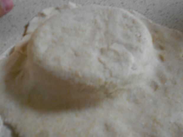 Aplanar la masa con un rodillo, pero asegúrese de que no es demasiado fina o bien se deshagan. Ahora coge la masa y colóquela sobre el molde al revés. Corte alrededor de los bordes por lo que tiene sólo la base de la tarta.