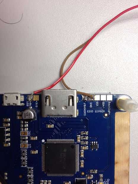 Después de usted tendrá que soldar dos cables a la pantalla para que puede recibir energía de la PiJuice. Soldar un cable rojo a la + cojín de 5V y un marrón o negro hilo al cojín GND. Idealmente estos dos cables tendría un doble conector hembra en el extremo.