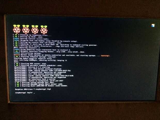 Antes de que usted encienda Asegúrese de que han aislado todas las conexiones para evitar cortocircuitos. Inserte la tarjeta sd (micro) y el poder hacia arriba. Si todo fue bien hecho, tras unos segundos debe presentarse con el inicio de sesión. YAY!!