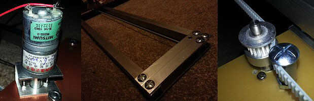 Una hoja de aluminio hizo el trabajo, que me permita montar el motor con seguridad. Más de los tubos de aluminio U formados por la conexión a los rieles. No usar cualquier ruedas como quería la plataforma detener rápidamente después de cada movimiento.