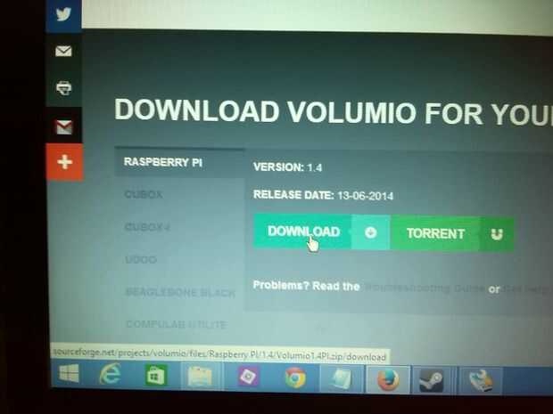 Conecte la tarjeta SD en su ordenador o lector de tarjetas, luego ir a http://volumio.org/get-started/y descargar Volumio de la Raspberry Pi.