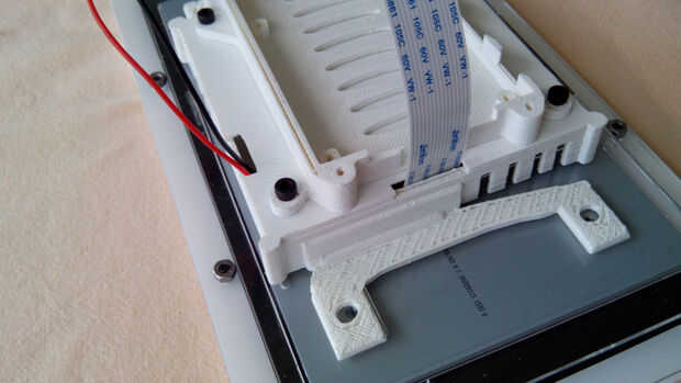 Si montarle el kit completo incluyendo el 3D impreso caso siga los pasos anteriores sin bloquear el segundo marco posterior con los cuatro tornillos y arandelas. Luego, uso el corto tornillos en lugar de las tuercas largas para bloquear la tarjeta controladora de pantalla táctil en la parte posterior de la pantalla.