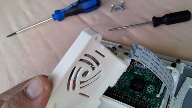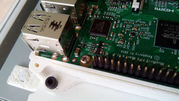 - Fijar la frambuesa PI para el caso base con cuatro tornillos