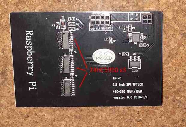 También se puede saber mucho por mirar en la parte posterior de la pantalla. Evitar cualquier TFT que tiene fichas de 3 x 74HC5950 en él. (No tiene IC driver real, son solo serial a cambio paralelo registros...) Ver fotos de ejemplos de una pantalla que funciona y uno para evitar.