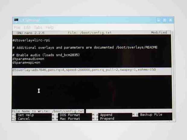 dtoverlay = ads7846,penirq = 4, velocidad = 2000000, penirq_pull = 2, swapxy = 1, xohms = 60