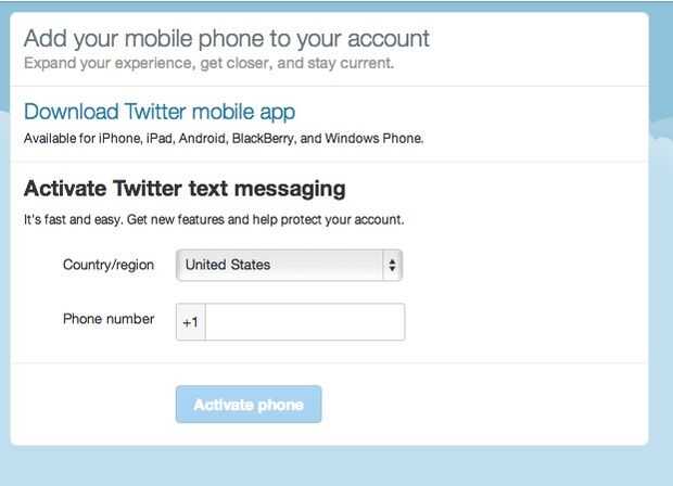 Agregue su número de teléfono y verificar el texto con Twitter (40404 ir).