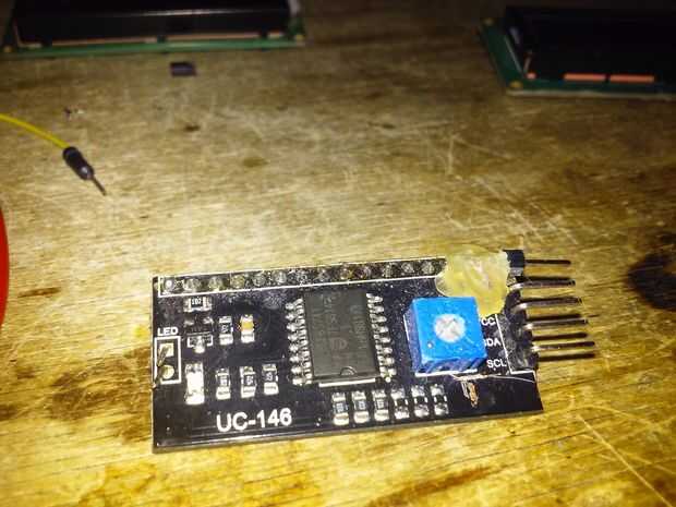 ¿Cuál es el verdadero problema de las mochilas y frambuesa Pi? Bien, como dije, los LCD necesitan alimentación de 5V, especialmente por el contraste. Esta mochila se utiliza principalmente para las configuraciones de Arduino + LCD 5V, así que usa 5V para el IC a bordo y sus pullups I2C, demasiado. Así, las líneas de I2C tienen 5V en ellos, que no es adecuado para la conexión a su Pi. PI tiene pullups, demasiado, así que una alternativa viable sería quitar pullups a bordo de la mochila - excepto que entonces deja de funcionar confiablemente. ¿Por qué? Voltaje mínimo las mochilas acepta como nivel lógico alto es 0.7VCC = 5V * 07 = en este caso 3, 5V, que es menor de 3.3 de frambuesa Pi y la situación llamo programadores "comportamiento indefinido" - puede que funcione o no. En mi caso, no funcionó. ¿La solución? IC de controlador de la mochila está perfectamente bien con 3.3V como VCC, sólo que la muestra no. Así, tenemos que aislar la línea de VCC, alimentar el regulador con 3, 3V y con una línea de 5V independiente - para la pantalla, y eso es un mod de hardware muy simple.