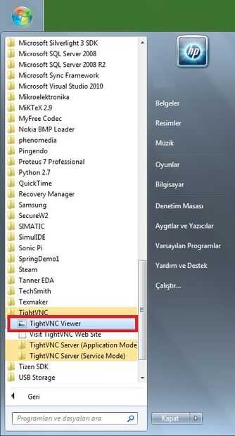 Ahora, vaya a Inicio >> programas >> TightVNC