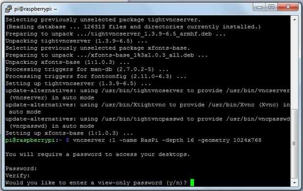Cuando arranca el servidor VNC (se le pedirá una contraseña):