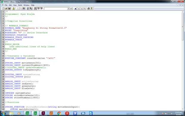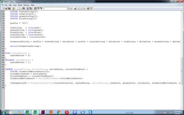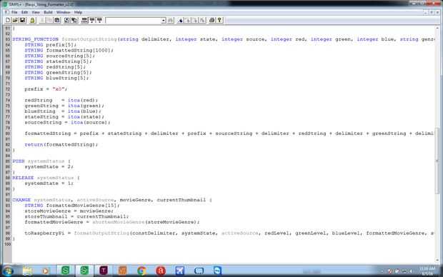 El módulo de crestron es bastante simple, solo toma la información del sistema y lo convierte en formato de cadena y concatena con delimitadores y envía a la frambuesa pi cuando cambia.