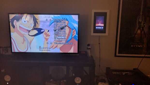 Reuní la pantalla táctil y el Pi de frambuesa para que todos los circuitos fueron dentro del panel de plexi para sake de seguridades. (mirar la foto en el enlace de ebay) Entonces utilicé algunas piezas pequeñas de madera contrachapada de abedul tenía de burlarse de algo para hacer unos soportes y atornillar el conjunto a la caja de la sombra por lo que es seguro. La parte delantera de la caja de la sombra se mantiene cerrada con imanes y no confío en los para mantener mi pantalla táctil $90 en allí. Perforó un agujero en la parte inferior de la caja de sombra para poder colgadas en la pared y lo encendió.