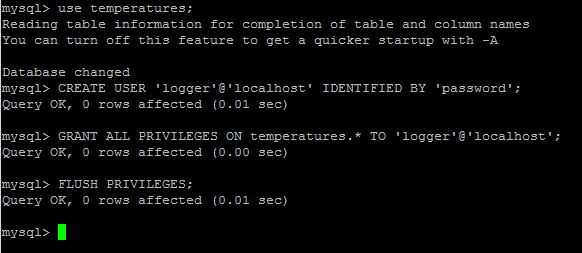 Eso es, mysql y base de datos está listo. Lo siguiente es descargar el DHT22-TemperatureLogger para leer sensores e insertar datos a estas nuevas tablas.