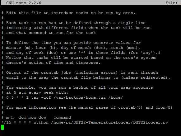 * / 15 **** python /home/pi/DHT22-TemperatureLogger/DHT22logger.py