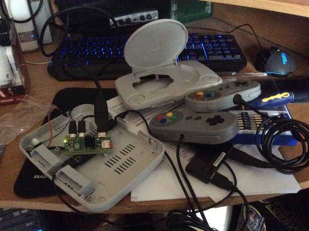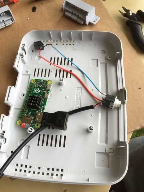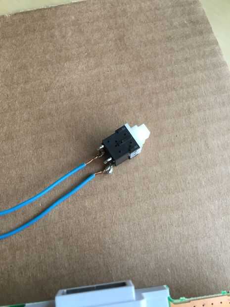 Quería utilizar el original en / Reset interruptor así que desoldar el interruptor del empuje de la placa base y poner algunos cables de prueba para comprobar la continuidad. Con continuidad confirmó cortar un cable de extensión usb mirco por la mitad y recortar la exterior para exponer los cables. Los que nos interesa son el negro (tierra) y los cables rojo (5v), los demás llevan datos pero como este es un interruptor, puede ser ignorados. Por lo que se sueldan los cables rojo y negro al interruptor por lo que hacen cuando se pulsa el botón.
