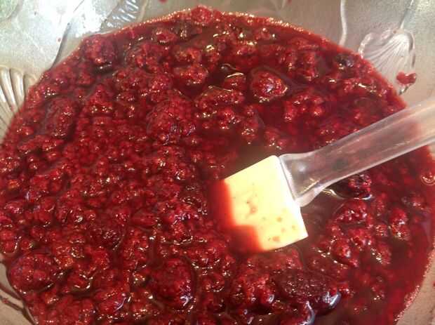 En un tazón grande mezcle 5 tazas de frambuesas o moras congeladas