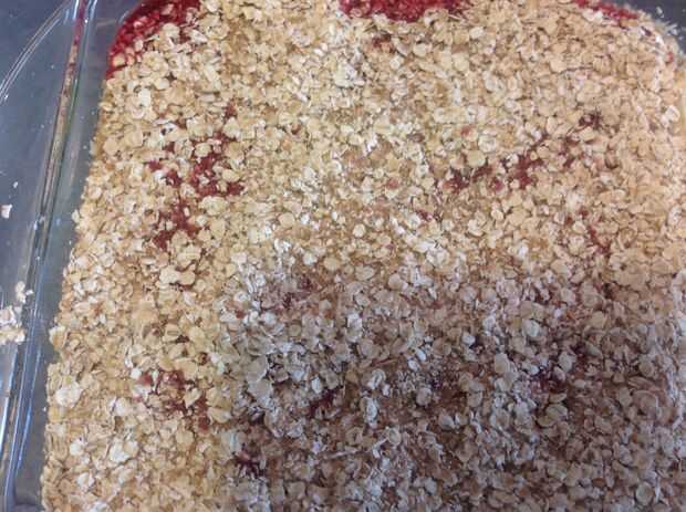 Encontré que la avena que vierte sobre el pastel y con la esperanza de que se distribuyen uniformemente