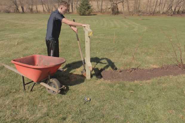 Coloque el poste en el agujero y rellenar con tierra. Polvo compacto alrededor de poste para hacer un ajuste apretado.