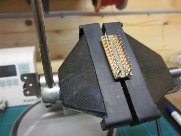 Ya que los encabezados de fila se inserta en la placa de soldadura-menos, necesitamos aplicar soldadura a la parte inferior de los pernos, al conservar una longitud decente de pin libre de soldadura. Evite tocar los pines excepto en la base donde sobresale de la Junta de tira y aplique soldadura en la parte inferior.
