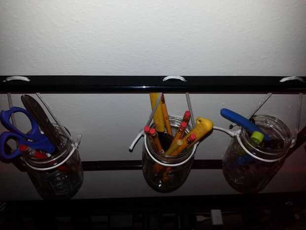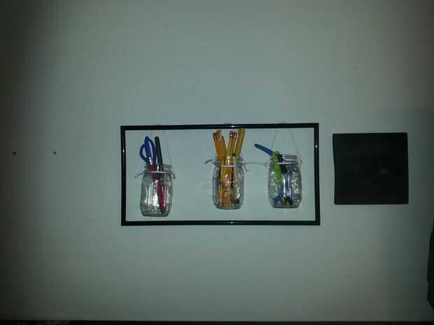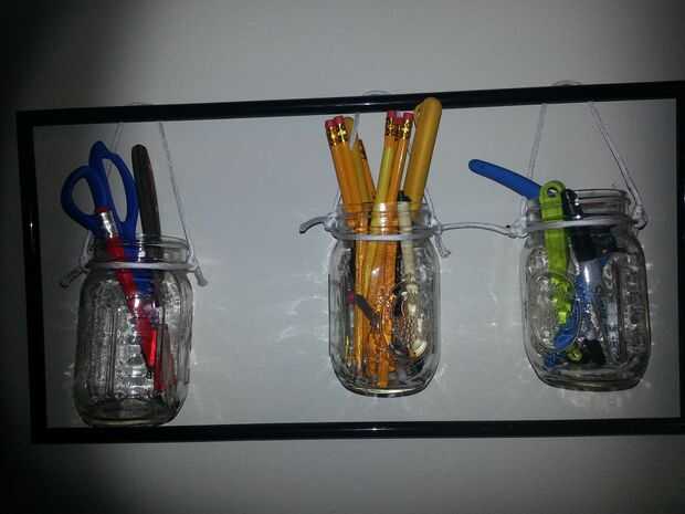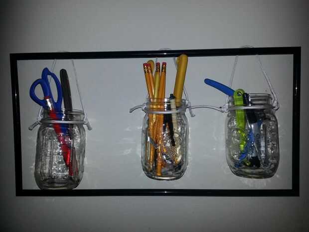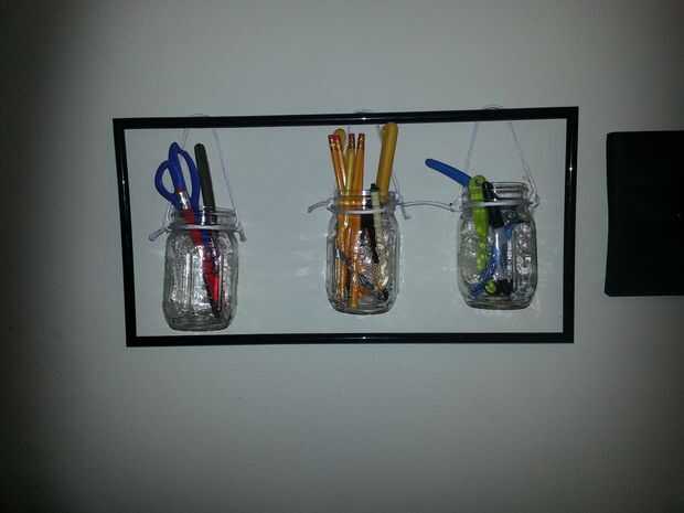 Este proyecto marco tarro de Masón es un gran proyecto para hacer. Es barato, se ve fresco y sirve a un propósito almacenando suministros en un fácil acceso a lugar. Tarros de Mason son grandes y bastante baratos. Usé el paracord para colocar los tarros. Paracord es también un producto fresco que tenía puesta alrededor. Tengo que ir a la tienda para conseguir el marco. Mi marco era negro que quería así que no era necesario para la pintura. Tengo mi marco en goodwill y llevó a cabo la parte posterior y el cristal, dejando solo el marco exterior. Hay un par de maneras de colocar los frascos. Mantener tijeras, bolígrafos, lápices, cinta, marcadores, cuchillo, etc. en la mía. Pongo tres frascos en mina que encajan bien en el marco de la. Si usted tiene un marco más grande puede añadir más frascos. También decoración de los tarros es una buena opción para que se vea incluso más fresco.