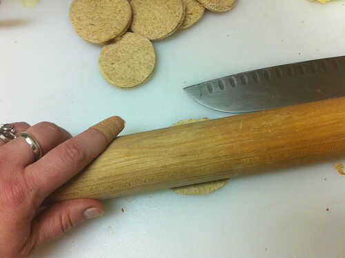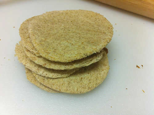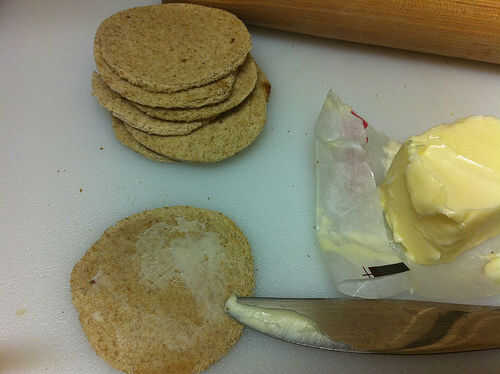 Dependiendo de su preferencia, puede rodar los círculos plana con un rodillo o aplastar plana como presionas en las latas del mollete. De cualquier manera, la mantequilla ligeramente la parte inferior para evitar que se pegue y añadir un bonito color dorado a la corteza.