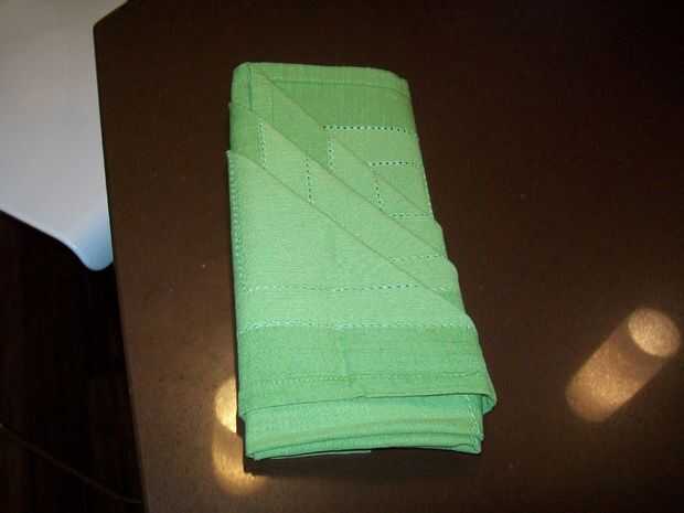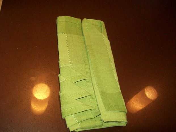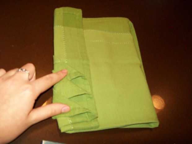 Dale la vuelta, doblar el lado izquierdo aproximadamente una pulgada a la derecha que usted sabrá que lo hiciste bien ya verás triángulos, doblar la derecha sobre la parte superior por lo que es de unos tres centímetros de la izquierda y dale la vuelta vuelta.