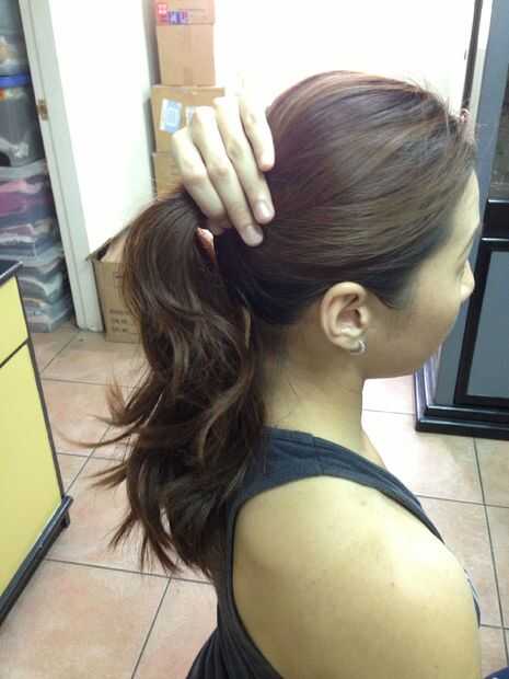 Recoger el cabello de la parte posterior la parte posterior para lograr un look de cola de caballo alta