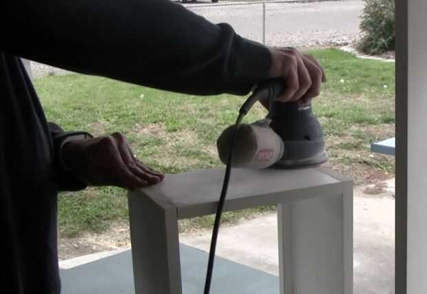 que quería hacer un estante de la pared.Paso 1: Plataforma preparación Encontrar una buena, limpia plataforma para formar la parte posterior de la plataforma. Usé una lijadora excentrica con papel de grano 60. Tomé algunos tablones amplia desde otra