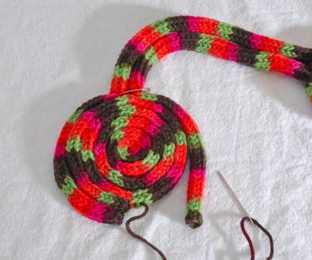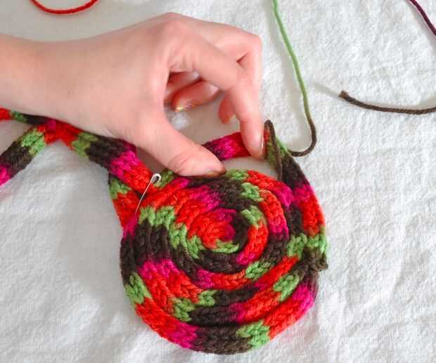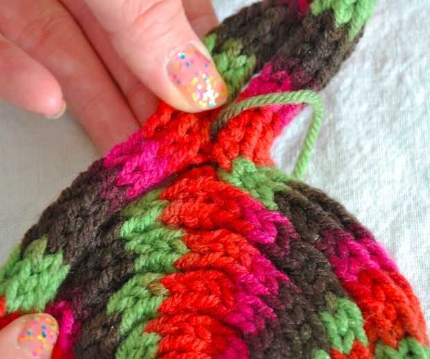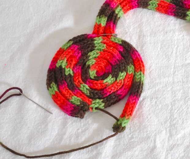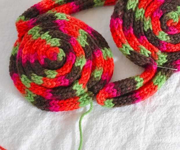 Comencé por coser los dos extremos hacia abajo en la parte inferior. Una vez en el lugar, empecé a coser todo el bollo. Cuando llegué a la parte superior del moño, cuidadosamente cosí juntas donde se unen los dos tubos y donde encuentran esos tubos el bollo. Desea realmente coser todo aquí porque no desea nada de esto tire a venir deshecho.