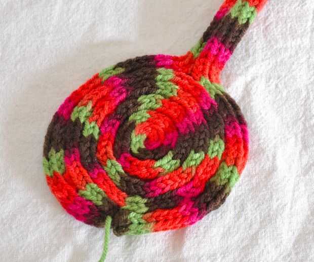 Siga cosiendo todo el bollo hasta llegar hacia atrás a donde usted comenzó.