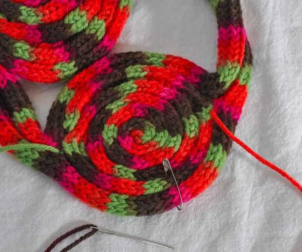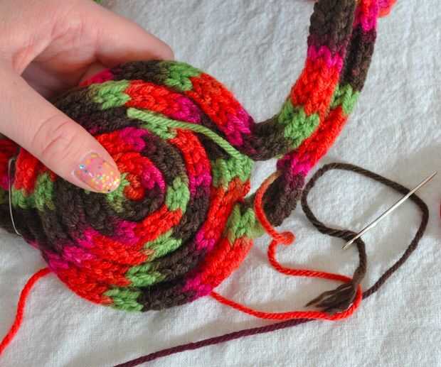 La segunda imagen muestra donde me cubrió a seguridad para sostener el tubo contra el pan por lo que pude coser uniformemente alrededor del bollo de pan.
