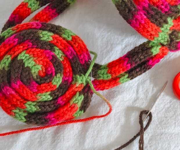 Coser todo el bollo para realmente coser los puntos en la parte superior e inferior donde encuentran las dos piezas del tubo del bollo de pan.