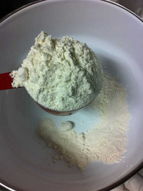 Medir y dejar de lado los ingredientes secos como la harina, la sal y el polvo de hornear.