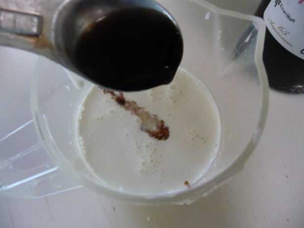 Combine la leche y la vainilla en una taza. Revolver.