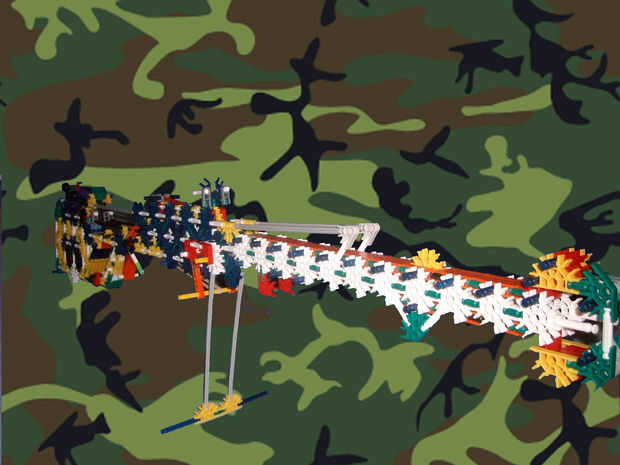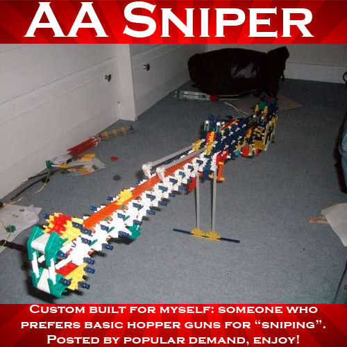 un rifle de francotirador accionado por banda elástica relativamente simple. Tiene un punto de Unión para disparar cualquier munición de más o menos que se puede llegar a caber en él.Pros: Más potente que una pistolaSe ve más impresionanteBrotes másP