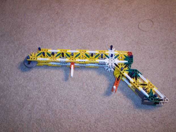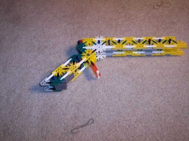 un arma impresionante que hice de una pistola que hicePaso 1: hacer el mango requiere 6 verde blanco conectores 3 clavijas 5 barras blanco y 3 conectores verdes miran la fotoPaso 2: haga la ram bastante trquires simple un conector Morado 1 clip tan 1