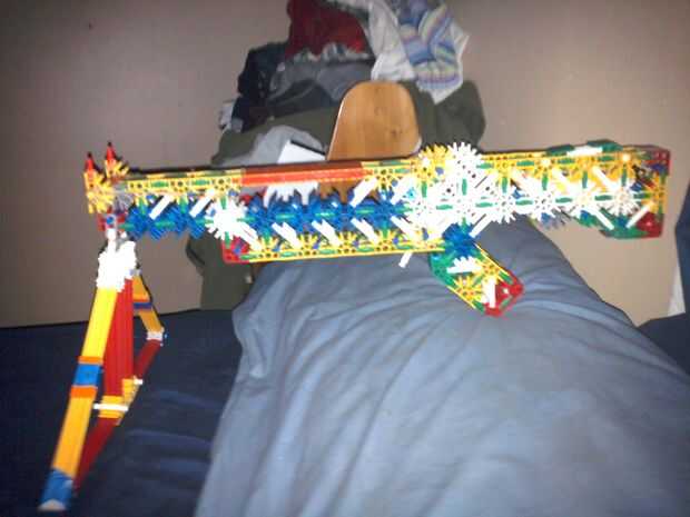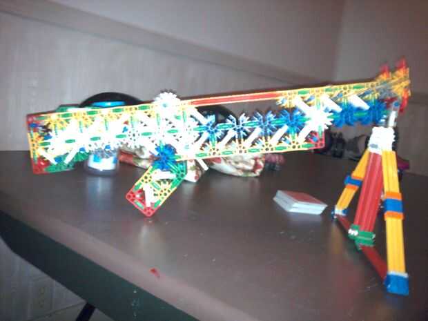 aquí es mi arma más reciente--me tomó unas 2 horas para hacer y otra hora para destruir (en un día) me puse muy triste cuando estuve probando causa pensé que iría aproximadamente 200 pies pero sólo tengo alrededor de 120 pies = (sin instrucciones se