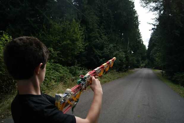 Puede disparar bandas de goma y munición o sólo bandas de goma.