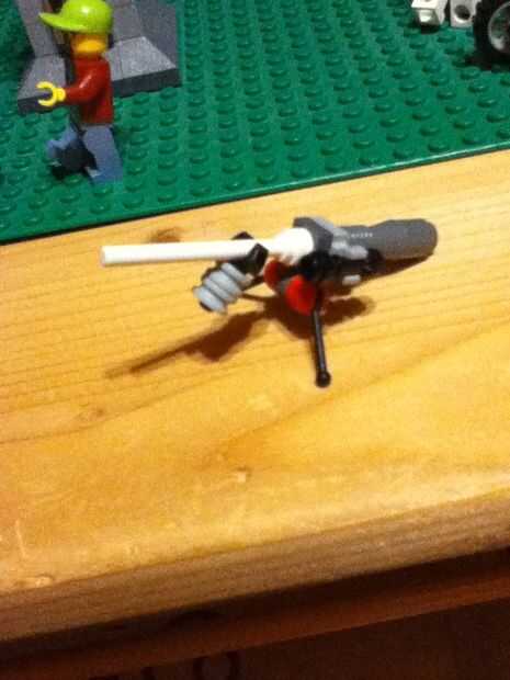 un rifle de francotirador accionado por banda elástica relativamente simple. Tiene un punto de Unión para disparar cualquier munición de más o menos que se puede llegar a caber en él.Pros: Más potente que una pistolaSe ve más impresionanteBrotes másP